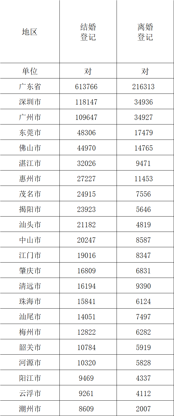 2025年广东仳离登记量