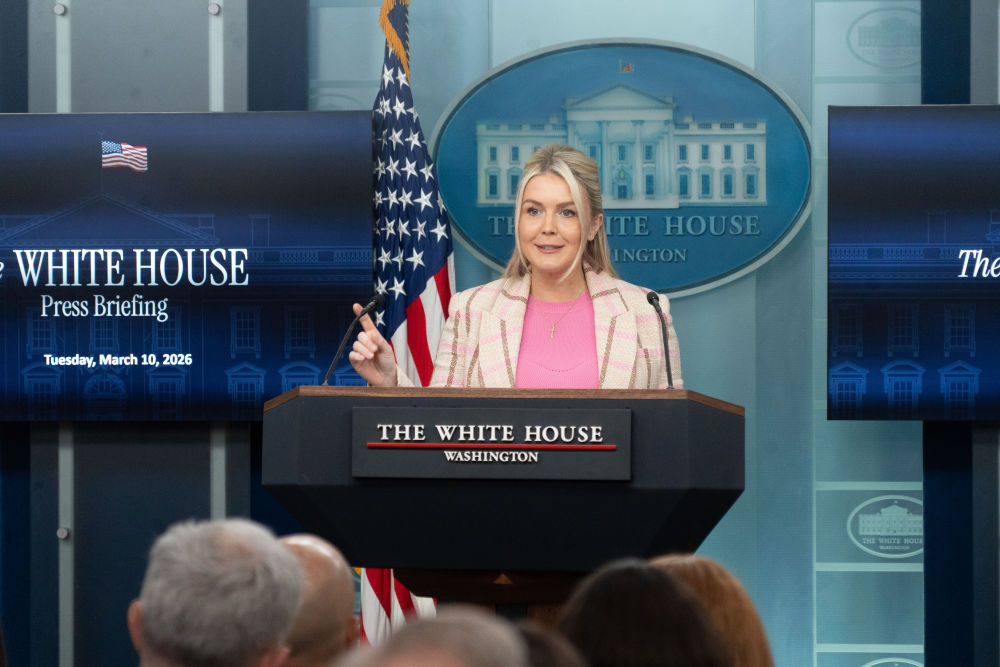 3月10日,在好意思国齐门华盛顿,白宫新闻文牍莱维特出席记者会。好意思国白宫新闻文牍莱维特10日在记者会上说,好意思国舟师当今莫得护送任何油轮或其他船只通过霍尔木兹海峡。新华社发(李源清摄)