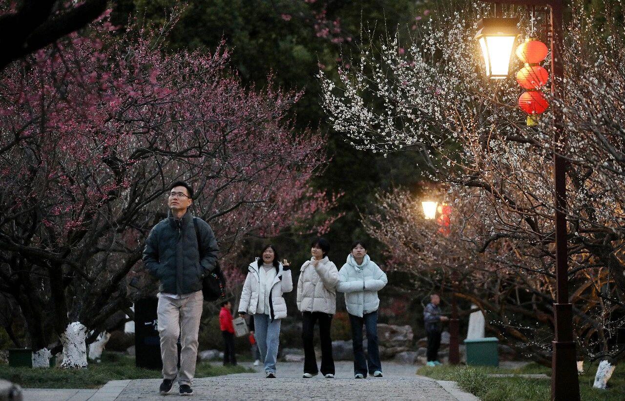 浙江杭州临平超山征象名胜区的梅花正处于盛花期,游东说念主如织。抬眼望去,粉白相间的花朵重重叠叠。枝端似锦尽情怒放,微风拂过,梅香溢满山间。游客们溜达花海,ag手机网拍照打卡,用镜头纪录下春日的好意思好俄顷。