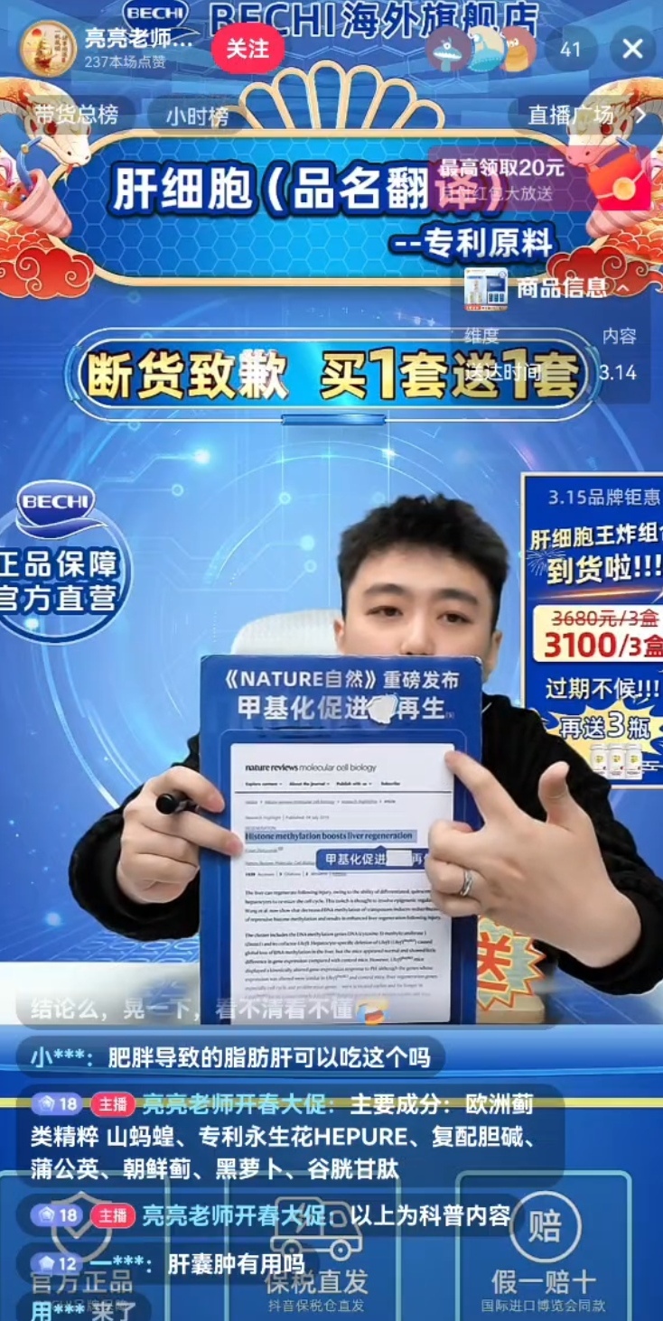 四川的张女士近日在购买了一款“热巴同款”水飞蓟护肝片,却被当大夫的家属捉弄是“才气税”。 记者拜访发现,无数告白及直播间中宣称“原装入口、诺奖得主参与研发、吃3瓶就规复健康”的网红保健品,年销量百万单,被打工族追捧为“续命神药”。 但它们所谓的中枢因素水飞蓟宾、槲皮素,在多位医疗巨匠眼中却“莫得临床论断,莫得诊疗后果”。