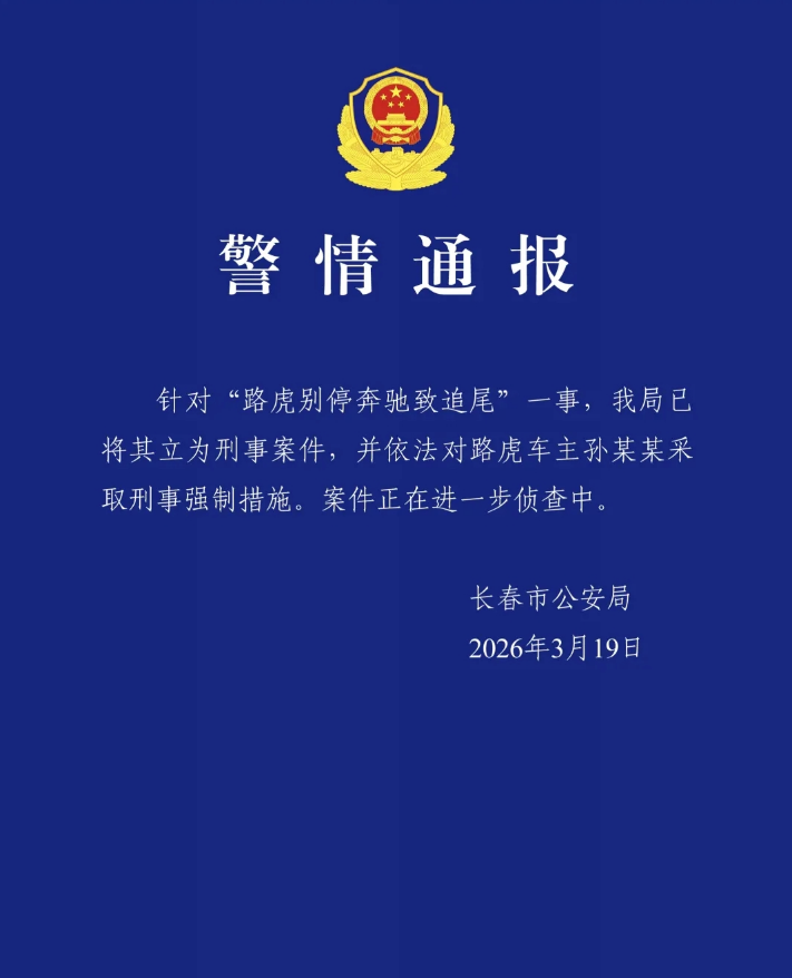 针对“路虎别停飞驰致追尾”一事,我局已将其立为刑事案件,斗鱼体育中国官网入口并照章对路虎车主孙某某给与刑事强制步伐。案件正在进一步考察中。