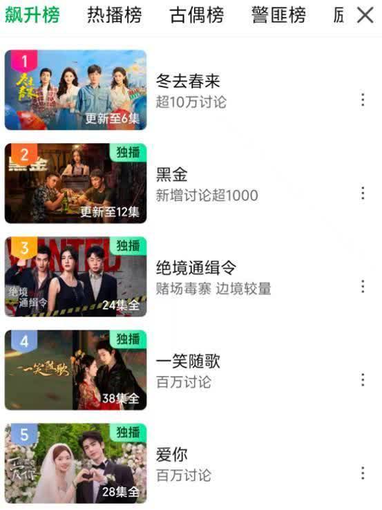 《黑金》首播冲上飙升榜第二,仅次于郑晓龙执导的《冬去春来》。