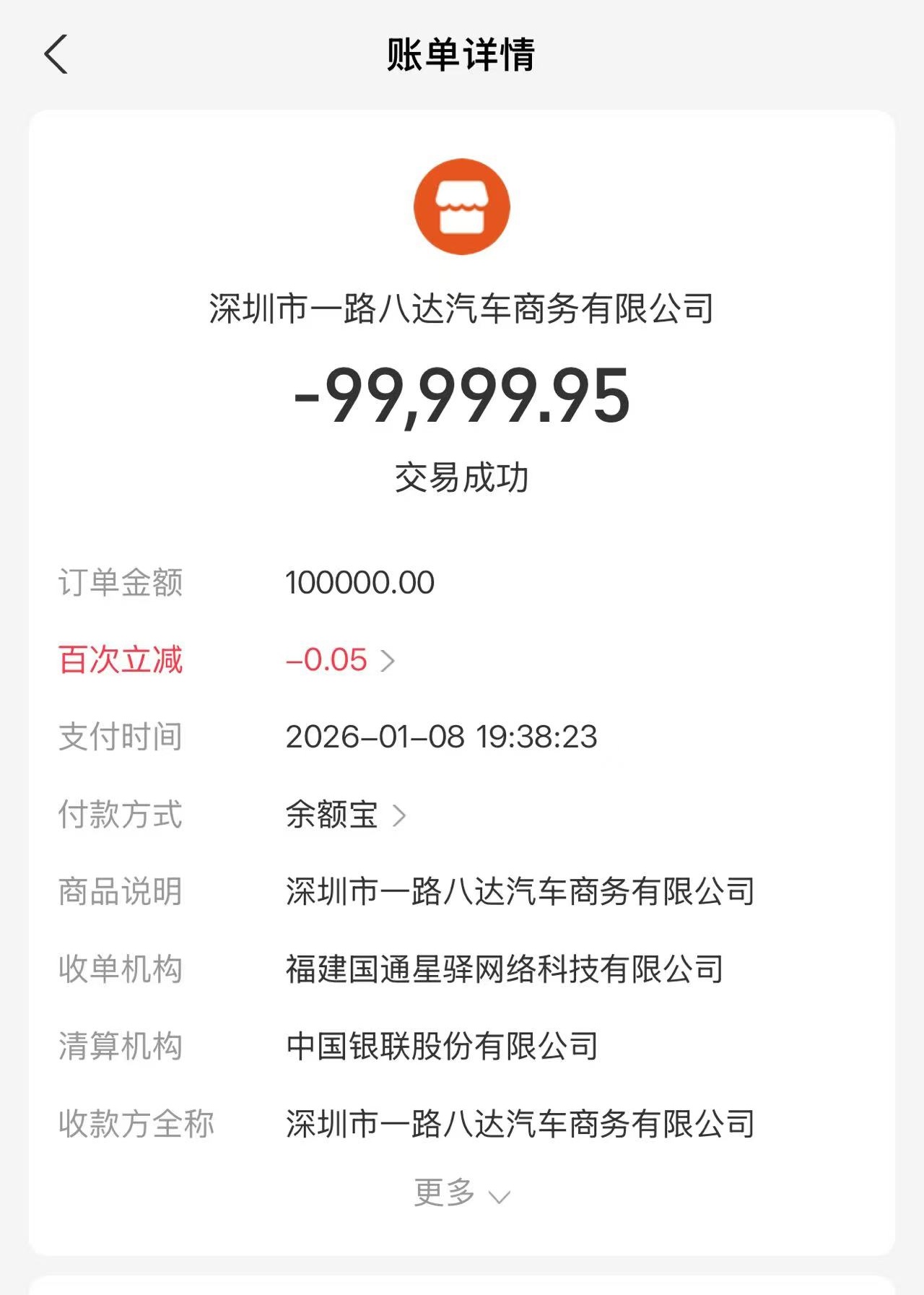郭先生按照“大牛超跑”提供的账户,向深圳市一谈八达汽车商务有限公司转了10万元订金。