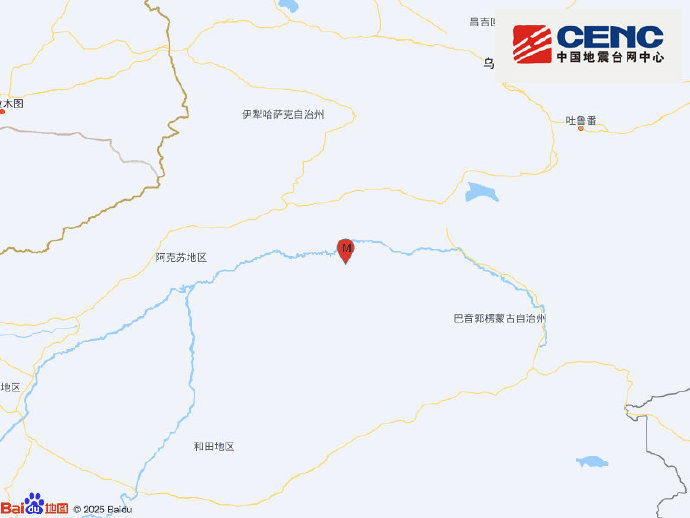据中国地震台网负责测定,2026年2月23日12时12分,在新疆巴音郭楞州尉犁县(北纬40.88度,东经84.17度)发生5.1级地震,震源深度15公里。